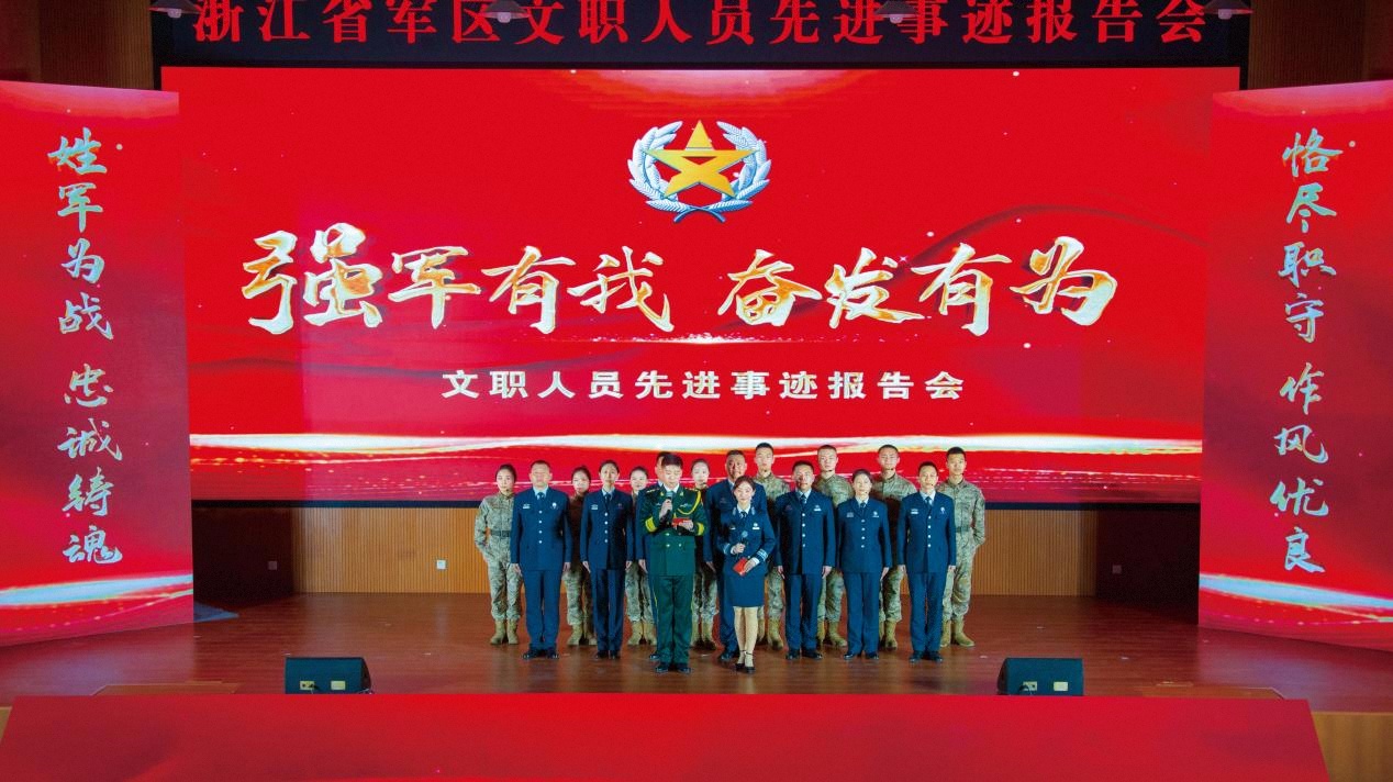 浙江省军区举行“强军有我·奋发有为”文职人员先进事迹报告会。