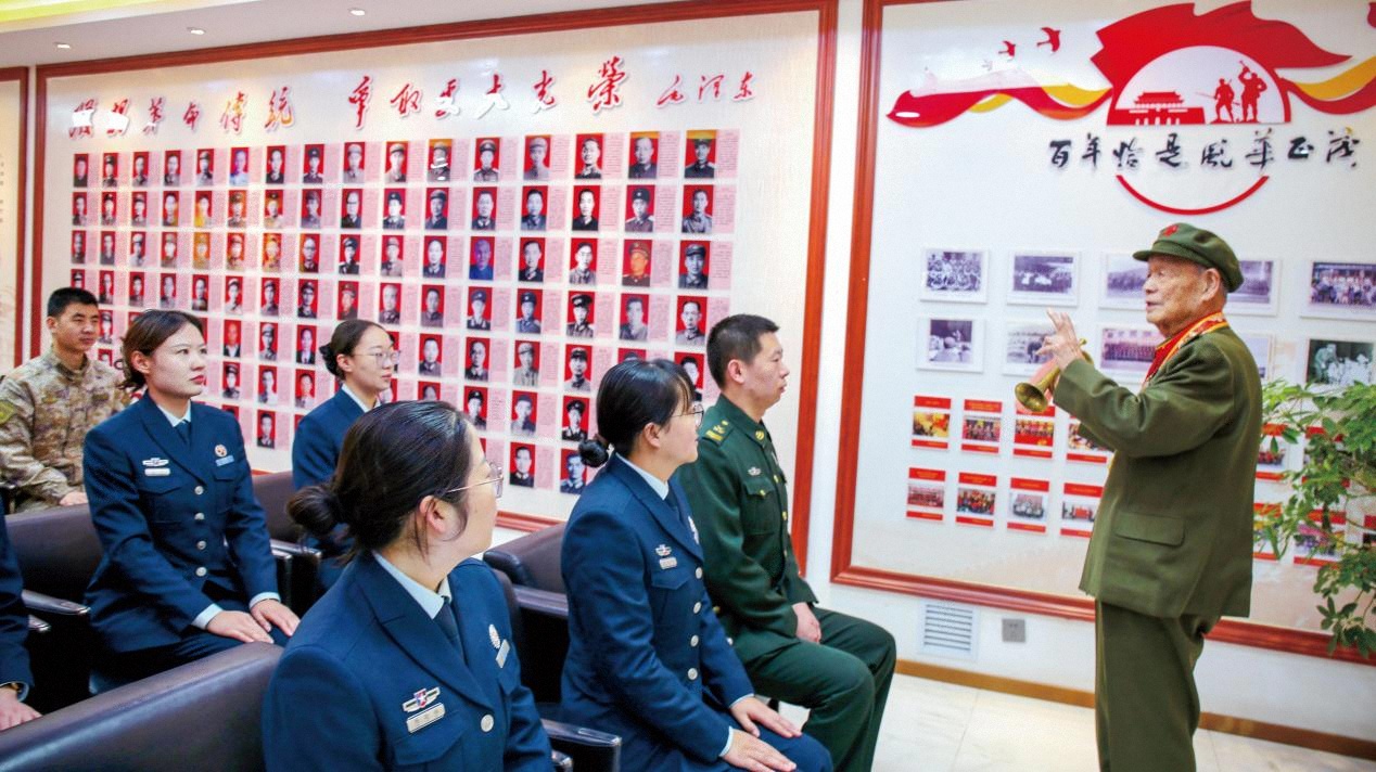 兰州第六离职干部休养所邀请老干部走进荣誉室讲述党史故事。(摄影/许伟峰)