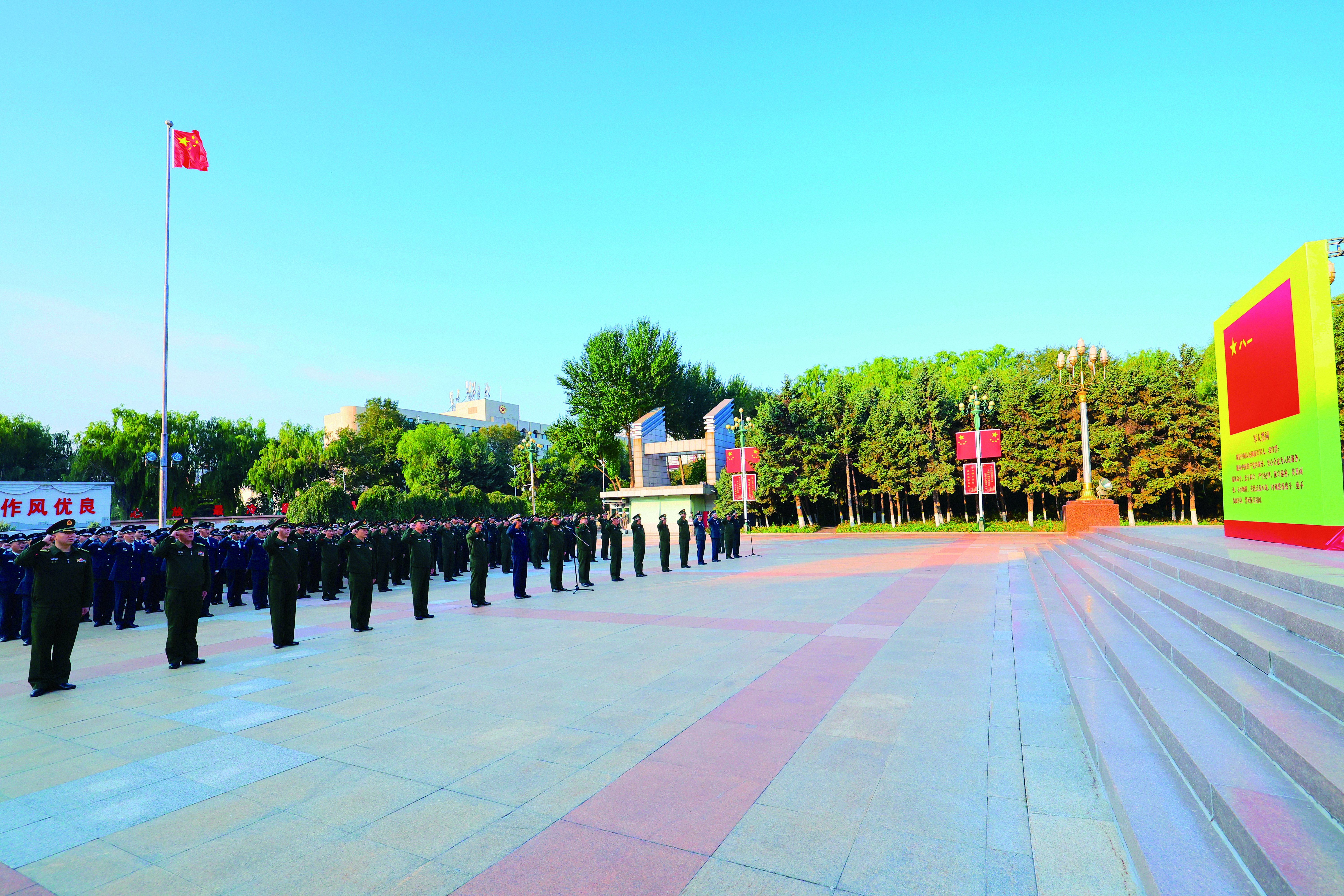 黑龙江省军区组织机关及直属单位官兵重温军人誓词。