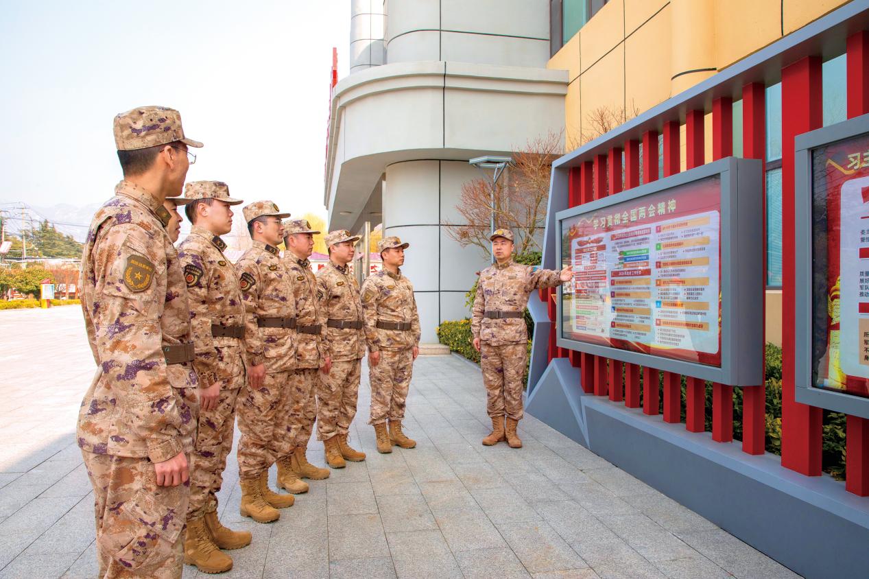 青岛市崂山区人武部以图解形式组织所属人员学习全国两会精神。(摄影/田 昆)