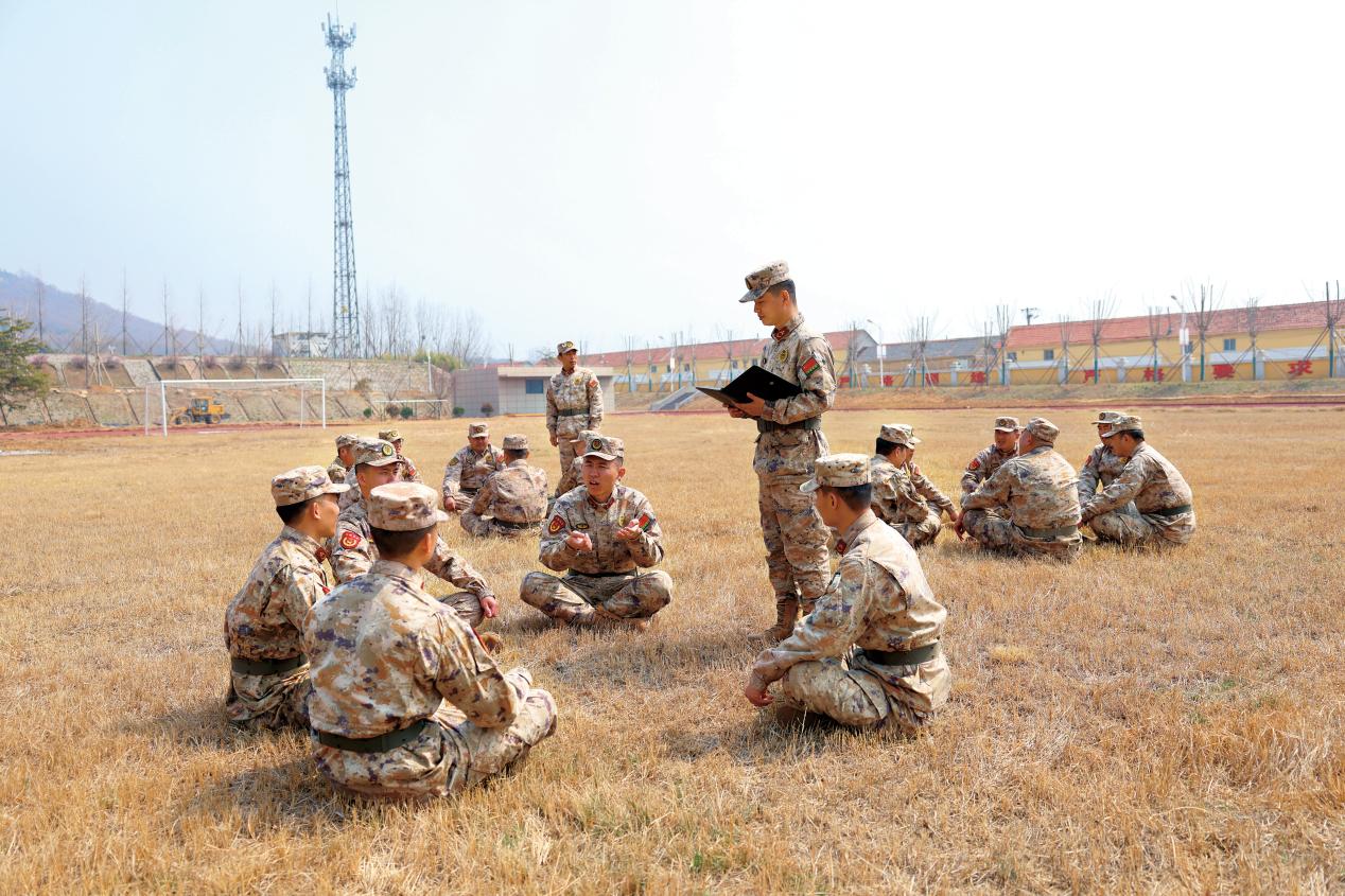 日照军分区利用训练间隙组织参加民兵教练员集训的民兵骨干学习全国两会精神。(摄影/苑书宁)
