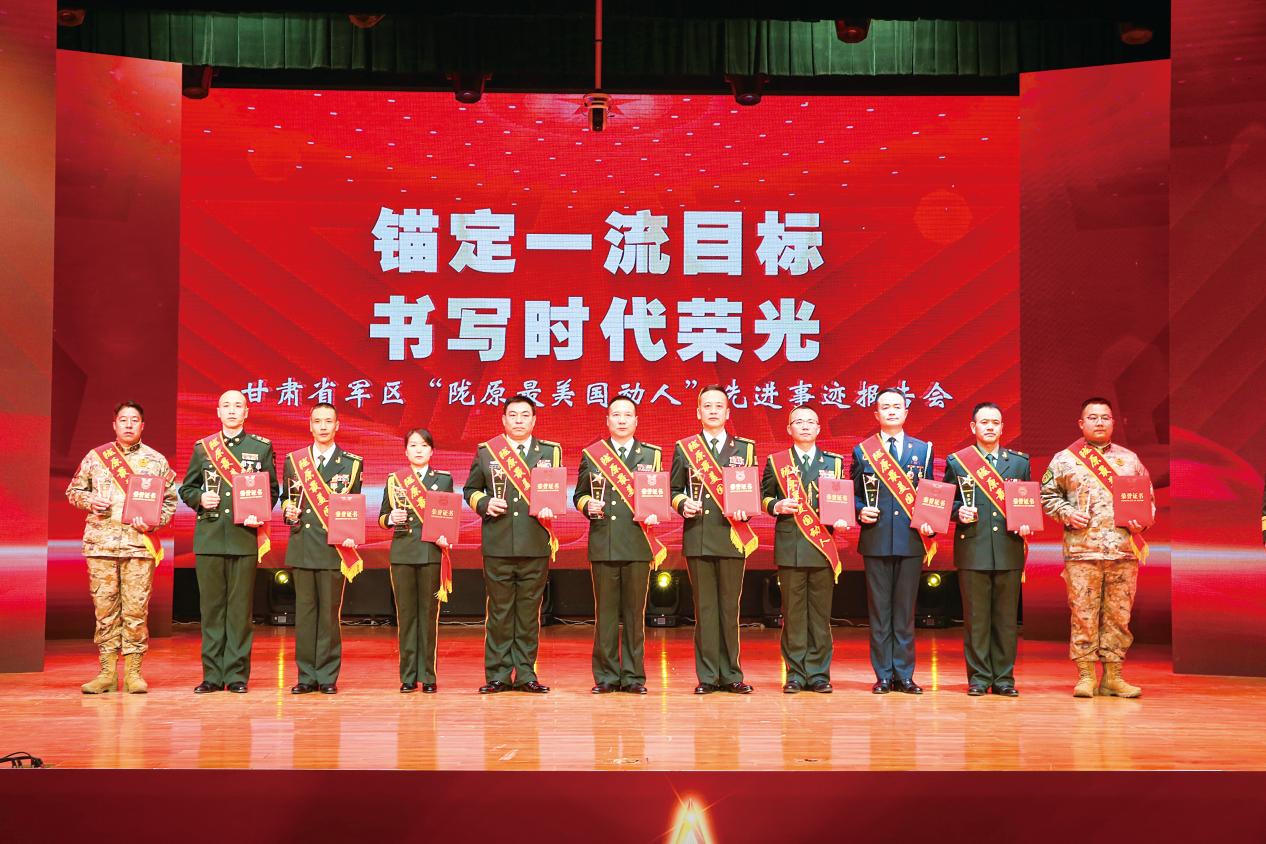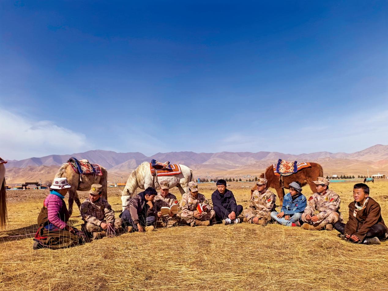 才让尖措(左三)被甘肃省军区表彰为“陇原最美国动人”。(摄影/徐晓庆)