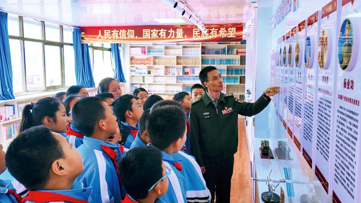 这些年,他主动对接拉卜楞藏民小学,并协调驻军部队和地方文旅等部门支持,建成了国防教育展厅。展厅内,整齐陈列着武器模型、军人训练图片、国防知识展板,还专门配备了藏汉双语讲解音频,让学生足不出校就能系统学习红色历史、聆听革命故事、接受国防教育。