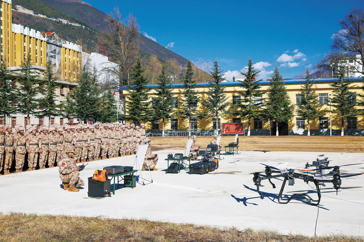 甘孜军分区组织民兵无人机侦察分队开展无人机侦察课目训练。(摄影/付晨宇)