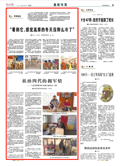 赵红亮:应该说,以不同形式来爱国拥军就是我们家的家风!现在我父母年纪大了,也轮到儿孙辈接过他们的担子了!长河马上要当兵,我希望他不要怕吃苦,吃苦就是吃补。另外要谨记:有国才有家,到了新疆边防线上,要练好本领,守好我们的国家。