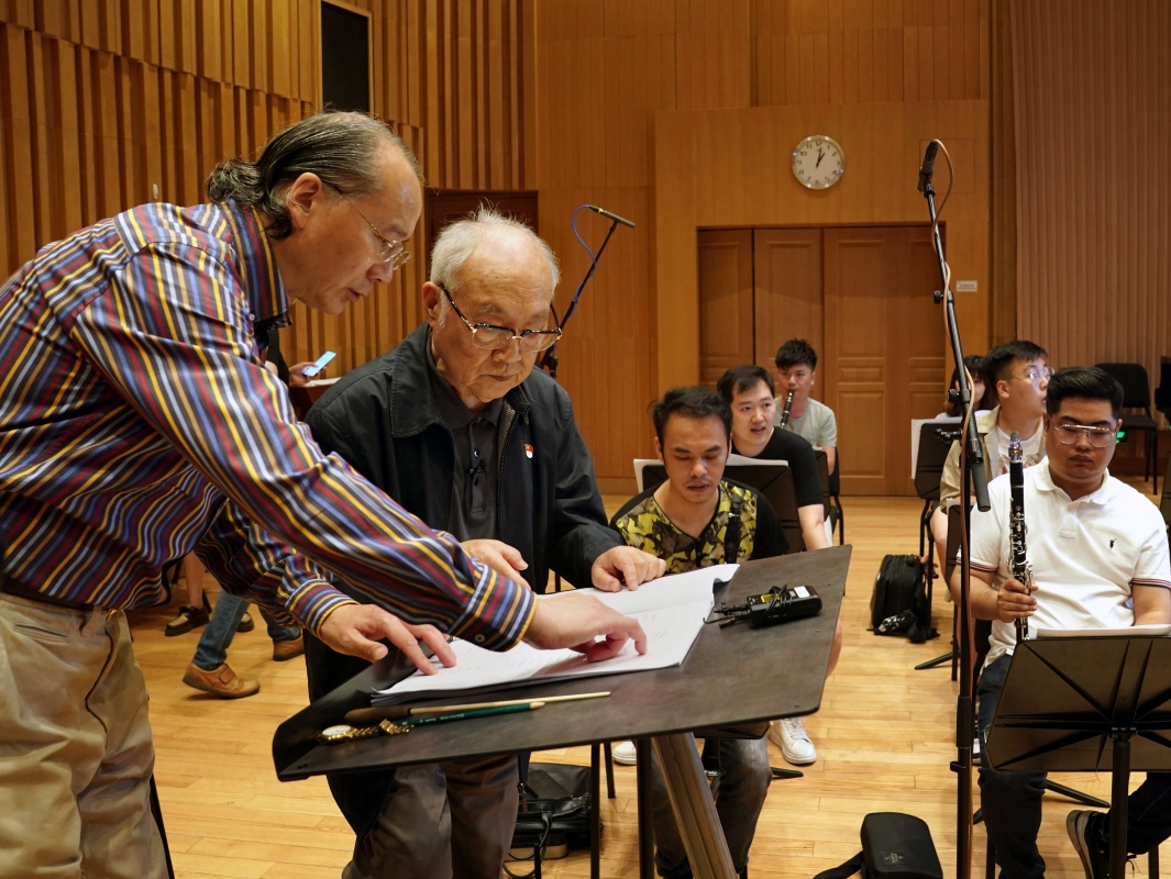 初夏的上海时阴时雨,闷热难耐。吕其明全程指导录制,洪亮的嗓音在排练厅的音罩内回荡。