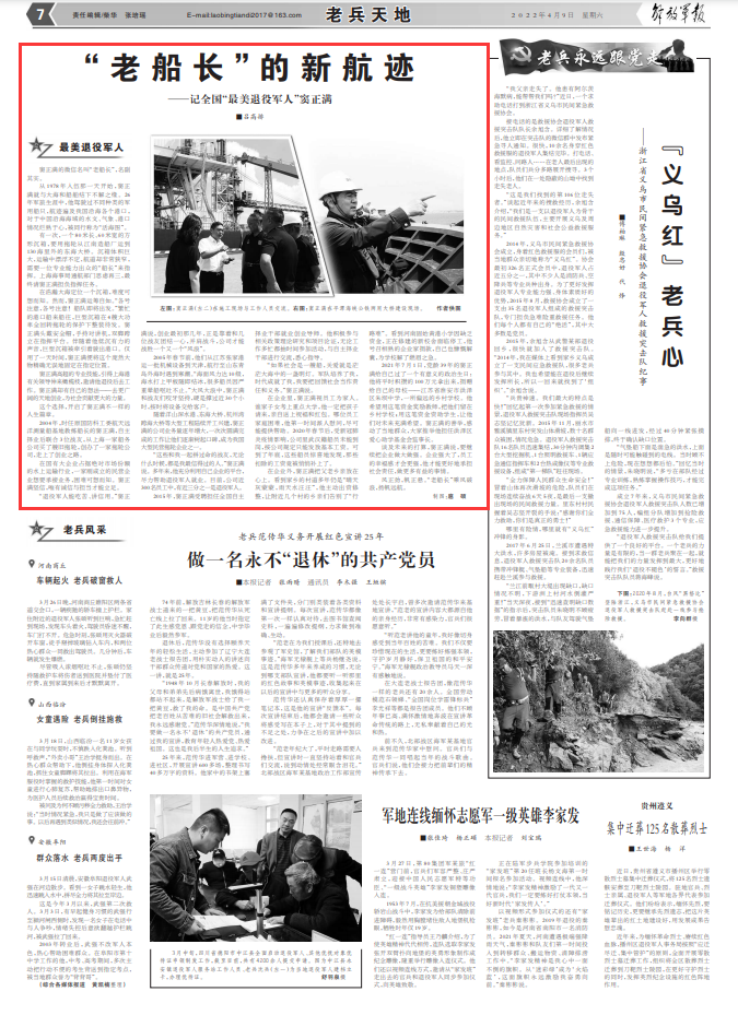 “如果社会是一艘船,关爱就是茫茫大海中的一盏明灯。军队培养了我,时代成就了我,我要把回馈社会当作责任和义务。”窦正满说。