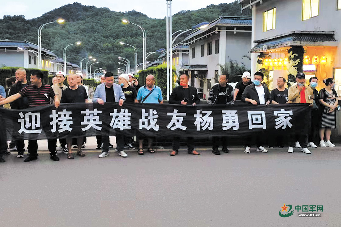 杨勇遗体告别仪式现场,当地群众和生前战友自发前来送别。