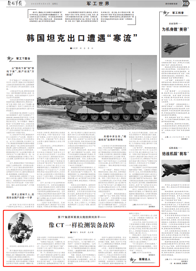 “故障决不能过夜。”关键时刻,刘洪平主动请战钻进战车,锐利的目光像CT一样全方位“扫描”着战车“内脏”。历经数个小时,他终于判定出故障点,赶在演习前将故障排除。