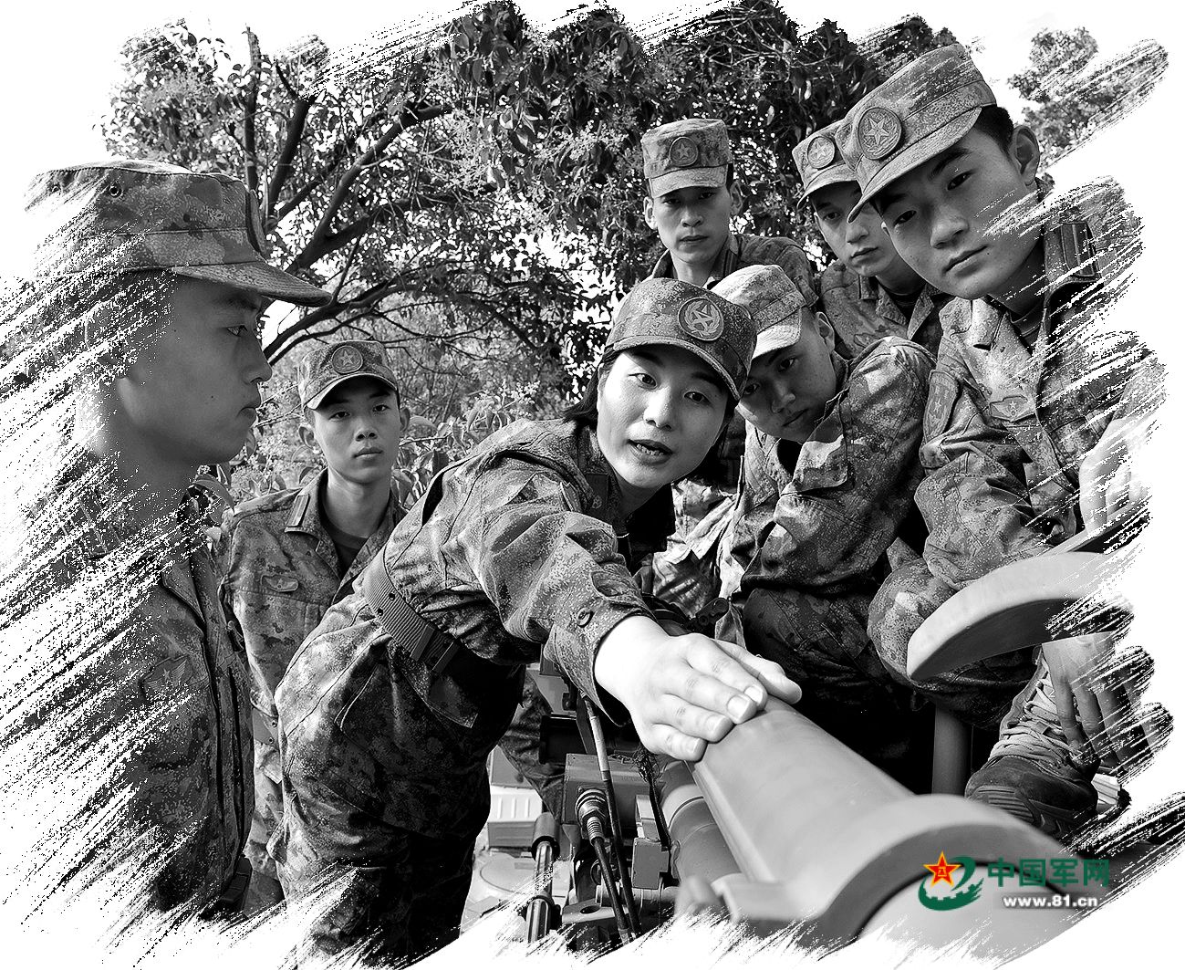 陈敏雅(左三)为学员讲解某型武器装备操作要领。姜 阳摄