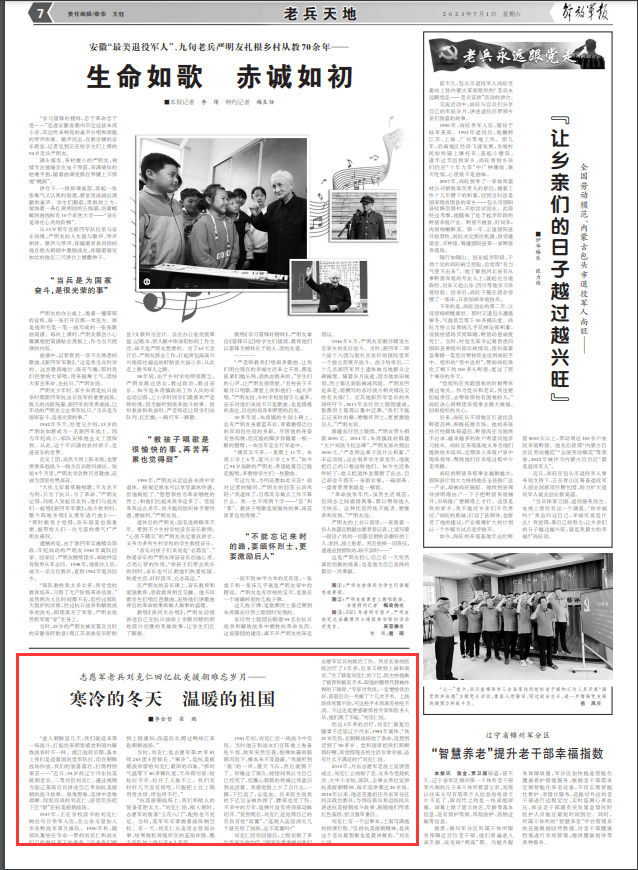经过3年多的治疗,刘克仁康复后随妻子迁居辽宁丹东,1984年离休。“我21岁负伤,在朝鲜战场捡了条命,没想到活到了90多岁。党和国家把我们照顾得好啊,我觉得现在的生活非常幸福,还有什么不满足的?”刘克仁说。