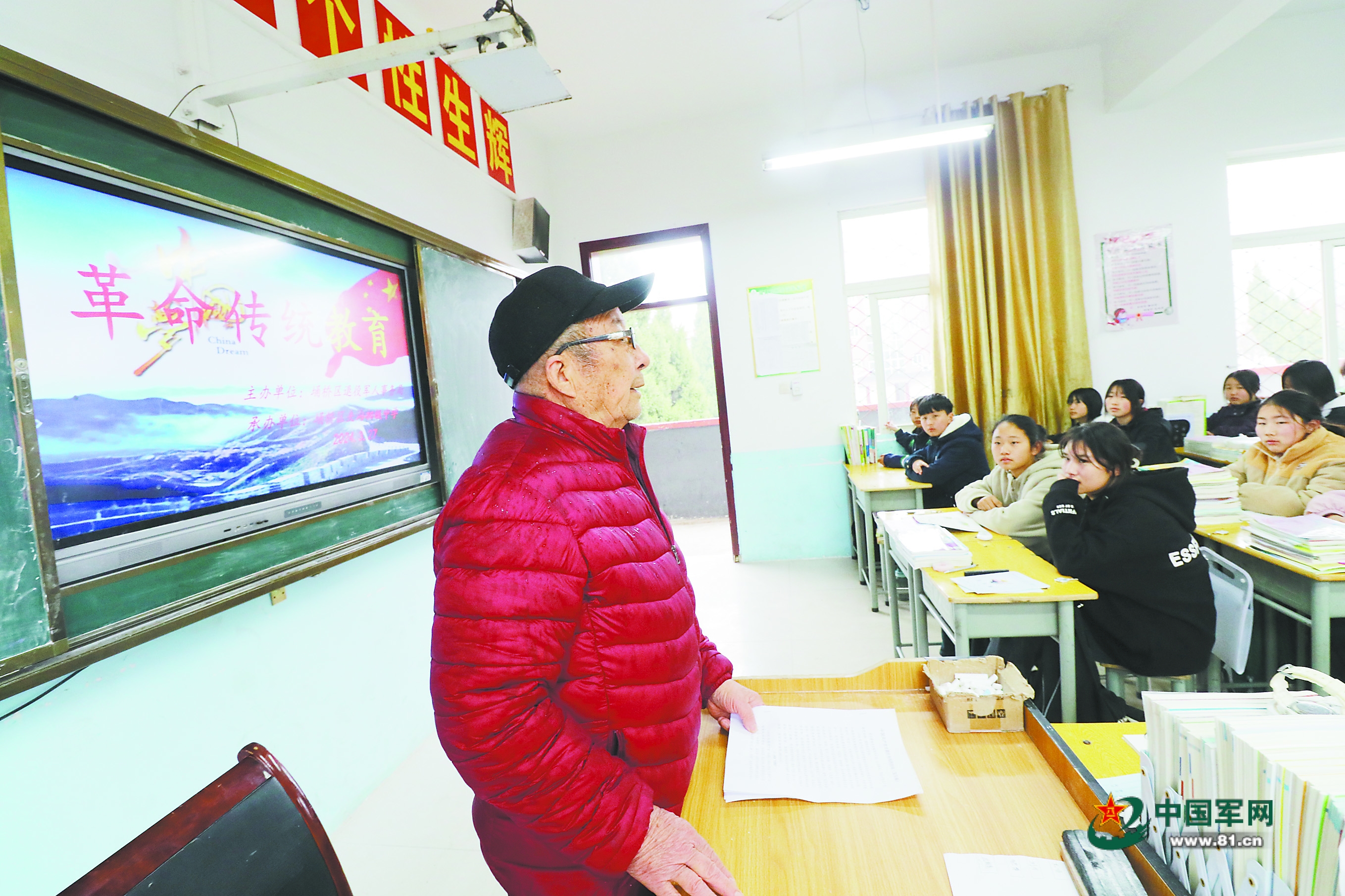 薛长道为埇桥区夹沟中学学生上革命传统教育课。曹 杰摄