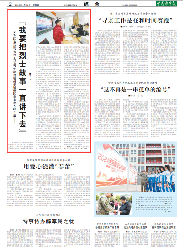“帮烈士寻亲,让英魂安息,是对烈士的缅怀,也是对烈士亲人的慰藉。在这一过程中,我也获得了讲好英雄故事的动力,我要把烈士故事一直讲下去!”薛长道深情地说。
