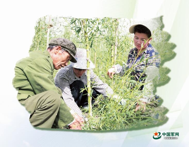 “到部队后,指导员教育我们,作为一名革命军人,当兵到新疆既要保卫边疆,又要建设边疆。”王成帮把指导员的话记在心里。无论在营区,还是在野外驻训,王成帮一有机会就试着种树。