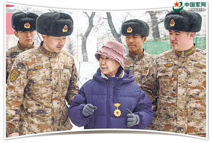 “张妈妈,感谢您一直以来对我们的关心。这是我们连队的‘刘英俊’奖章,我们想把它送给您。”