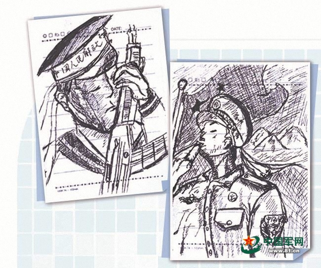 金城龙绘制的军旅素描画。