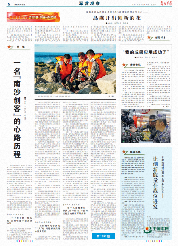 一个驻守岛礁7年的基层军官,为何能取得如此多的创新成果?一名“岛礁创客”又凭什么接连获得国家专利?