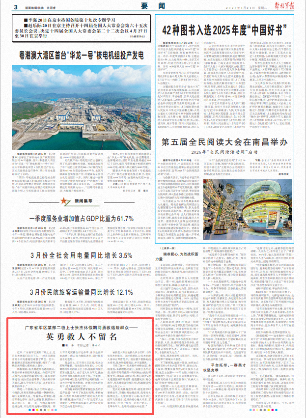 广东省军区某部二级上士张杰休假期间勇救遇险群众——