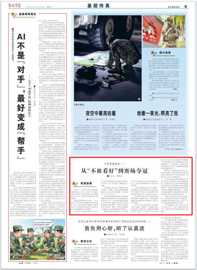 如今,姚皓泷已成为连队公认的“无人机尖兵”。未来,他还将向夜间飞行、多机协同等更高难度课目发起挑战。