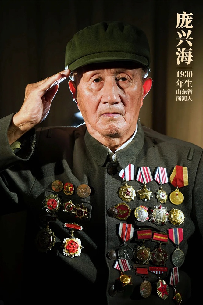 庞兴海,1930年生,山东商河人,1952年随部队入朝。1953年,在石砚洞北山反击战中,庞兴海因头部重伤昏迷被送往后方医院,战友没有找到他,以为他牺牲了,向国内发回牺牲通知,他的名字还被刻在烈士纪念碑上。1958年,回到家乡的庞兴海才知道自己成了“活烈士”。庞兴海在抗美援朝战争中荣立二等功1次、三等功1次。新华社记者 王松 摄