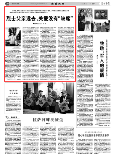 罗军牺牲1个月后,他的女儿罗丹出生了。后来,他的妻子带着孩子回了娘家。由于当年通信不便,罗军的老部队多次寻找罗军妻子未果,直到罗丹上大学时,老部队才和他们取得联系。此后每年春节,老部队都会派人到罗丹家中慰问,帮着解决一些困难,罗丹的生活中也出现了很多关心关爱她的父辈。