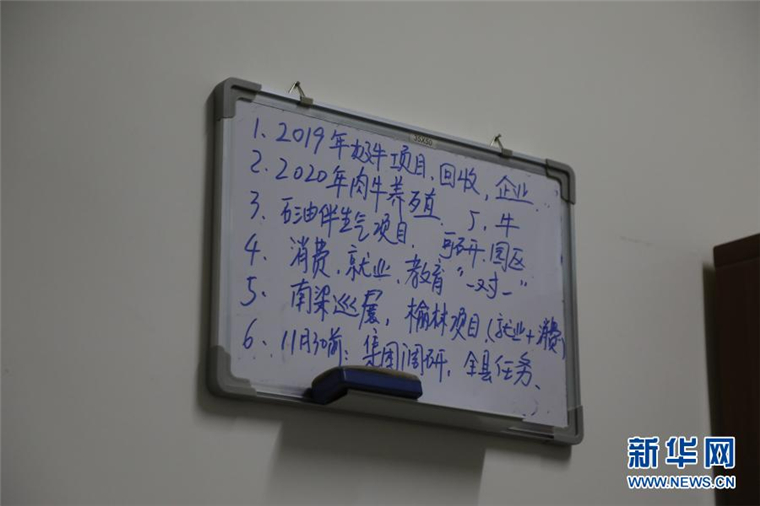这是邱军办公室里他记录日常工作用的白板(1月23日摄)。新华社记者 马莎 摄