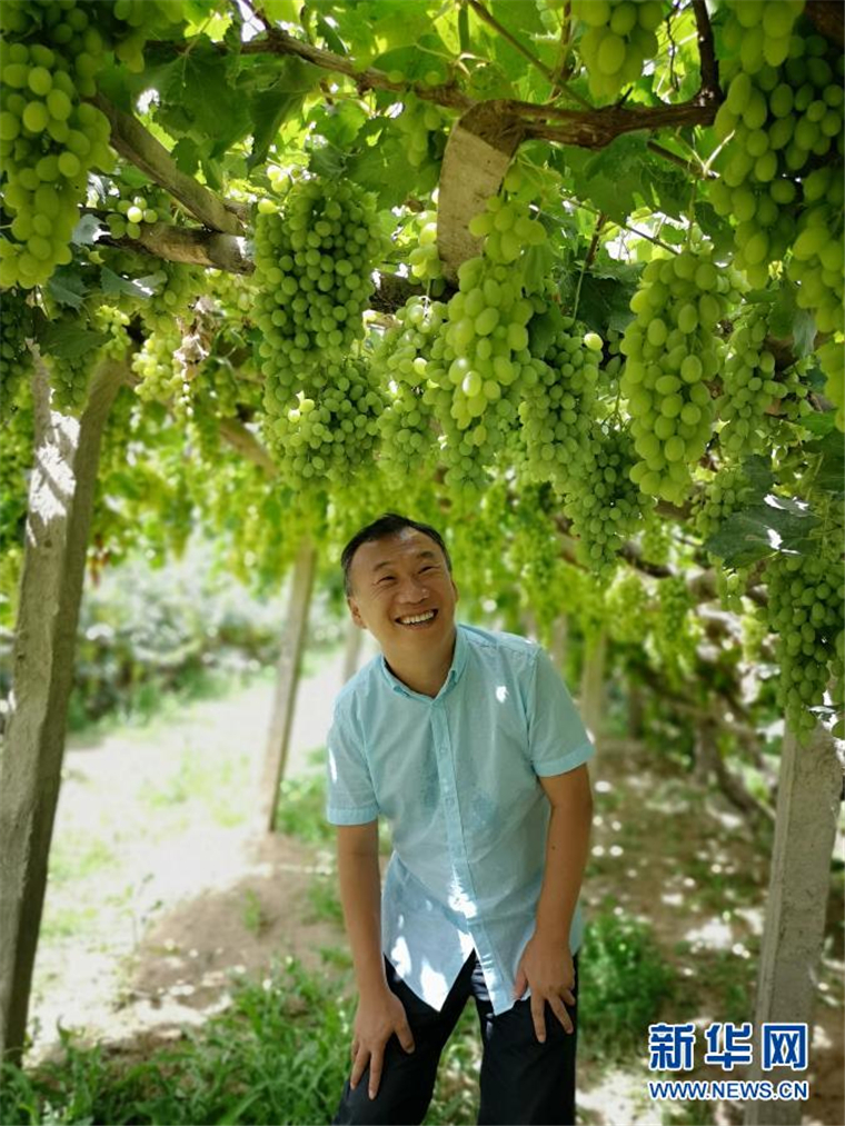 天津援疆干部席世明在于田县一家葡萄种植合作社(资料照片)。新华社发