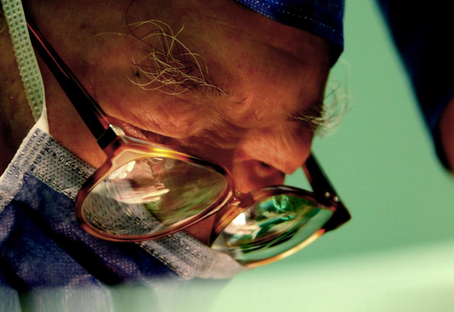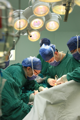 ↑吴孟超走上手术台,全神贯注地投入手术中。王建民 摄