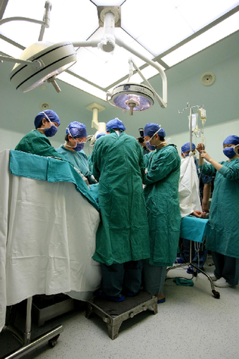 ↑手术顺利。大家都很高兴,吴老也笑出了声。王建民摄