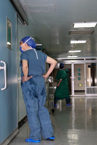 ↑走出手术室,吴老明显很疲惫,毕竟是89岁的老人。王建民 摄