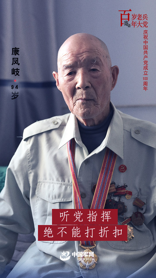 在河北省平山县光荣院的一间小屋内,记者见到了这位名叫康凤岐的老兵,他今年虽已94岁高龄,但身体依然非常健朗。面对镜头,他双手扶膝,端坐在床上,挺了挺腰板,虽已是期颐之年,但军人硬朗的气质丝毫不减。