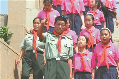 2017年9月14日,王继才夫妇向上岛参观的孩子们进行国防教育。 吴晨光 徐兆祝摄 视觉江苏网供图