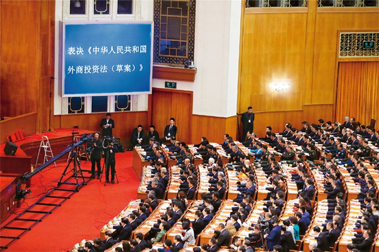 法治是最好的营商环境,开放是发展的必由之路。2019年3月15日,十三届全国人大二次会议表决通过《中华人民共和国外商投资法》,建立起新时代我国外商投资法律制度的“四梁八柱”。该法已于2020年1月1日起实行。图为《中华人民共和国外商投资法(草案)》表决现场。中新社记者 杜洋/摄