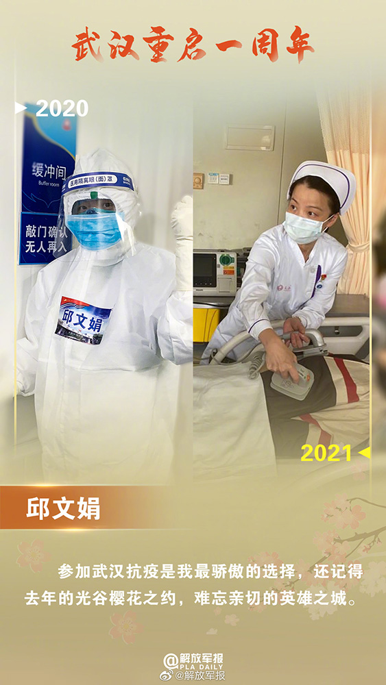 时隔一年,武汉这座英雄的城市现在正焕发着勃勃生机,军队支援湖北医疗队队员纷纷晒照,为武汉送祝福,致敬英雄的城市!