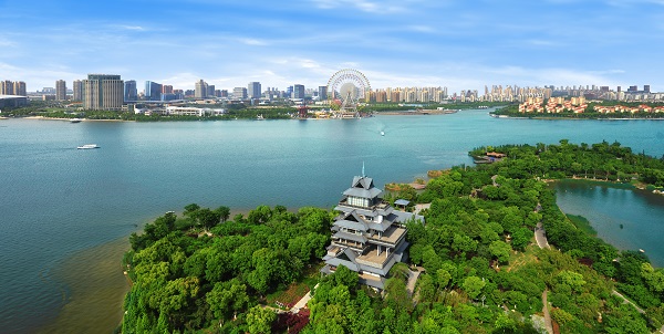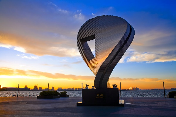交汇点讯 金鸡湖畔,一座由两个动态扭转的圆相叠而成的“圆融”雕塑,象征着中新两国政府间的友好合作,见证了江苏苏州工业园区蝶变腾飞的奇迹。
