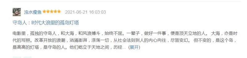 影片用写实的镜头和朴实的口吻,以实景和特效高度还原守岛生活,从情节到视听多维度打造出这样一部符合当下观众审美的优秀作品。