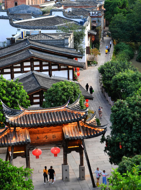 ↑7月10日,福州三坊七巷文化街区南后街上游人如织(无人机照片)。