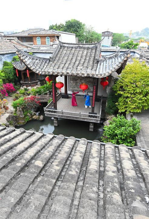 ↑4月18日,福州三坊七巷水榭戏台的闽剧表演。