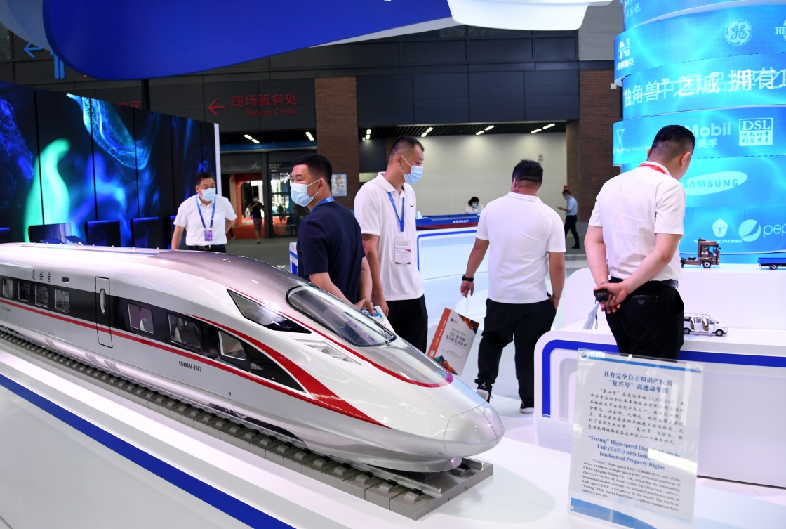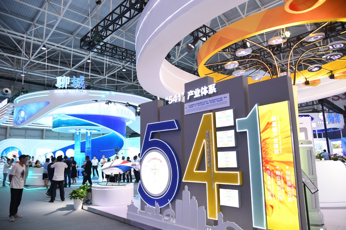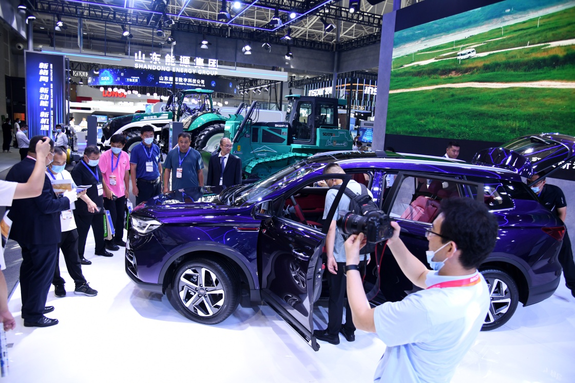7月15日,参观者在2021新动能·青岛展览洽谈会线下主题展上参观。新华社记者 李紫恒 摄