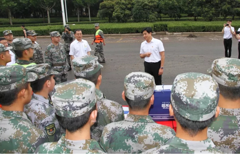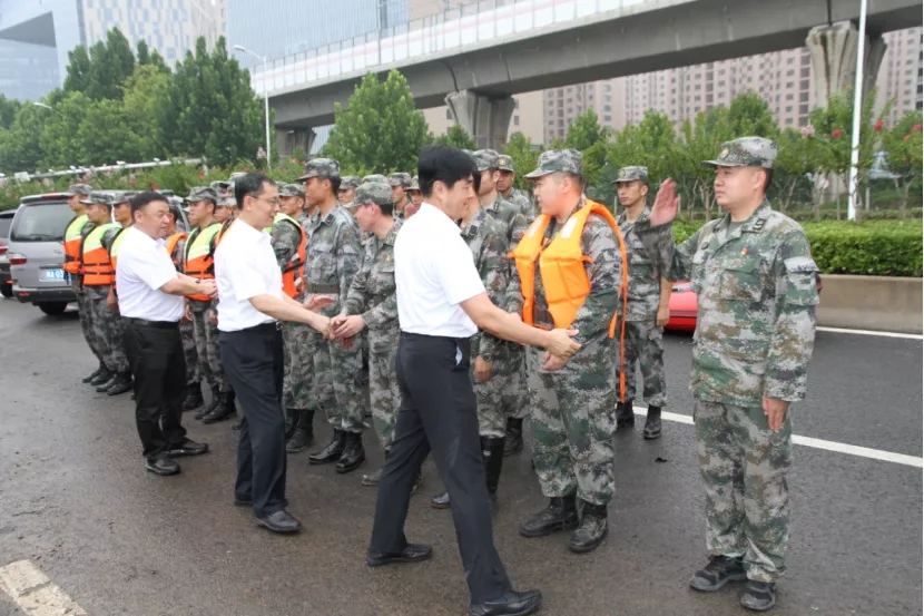 徐国华书记十分关心前线救灾队伍情况,带队迅速赶赴防汛救灾前线。在艰难涉水2个小时68公里后,工作组一行到达中牟救灾前线,送去融通旅发全体员工最真挚的问候,将急需的食品和其他慰问品送到了一线救援人员手上。他说,党和人民需要在哪里,融通旅发人就要战斗在哪里,我们要自觉履行社会责任,彰显央企担当,全力为前线防汛救灾做好保障任务。救援部队指战员为融通旅发人的真情所感染,报以热烈的掌声,现场充满了军民鱼水一家亲的浓浓氛围。