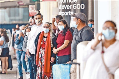 鉴于新冠肺炎感染和住院人数持续增加,美国洛杉矶县近日开始恢复室内公共场所戴口罩的强制规定。图为在美国洛杉矶国际机场佩戴口罩的旅客人群。新华社发