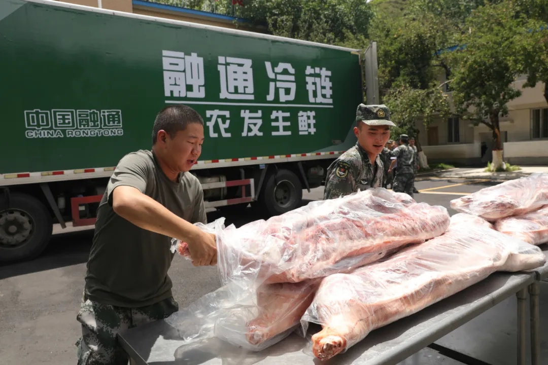 “出发……”随着一声号令响彻营区,冷链车满载着融通农发首批出栏自养的近200头生猪等慰问品的“八一”慰问团从西藏军区某部启程出发。这是7月26日融通农发“重走长征路,情暖子弟兵”特别党建活动启动仪式的一个镜头。截至日前,融通农发一行人员已经慰问2个高原大站,15个基层单位,送去慰问生猪48头,行程达到约1500公里。