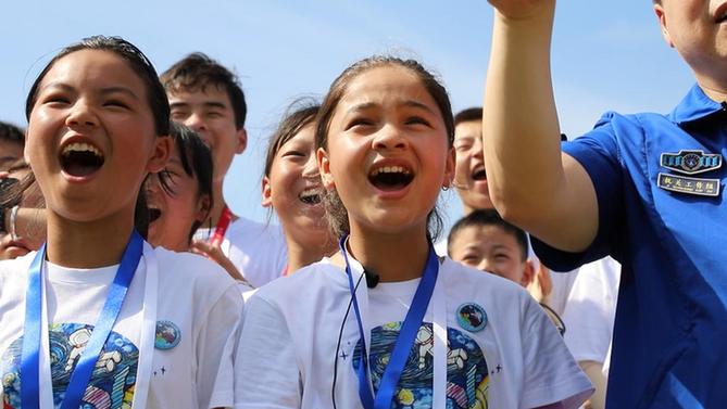 来自中西部地区的36名中小学生,从家乡出发,一路跨越山海,与航天英雄杨利伟一起在文昌观看天舟三号货运飞船发射。