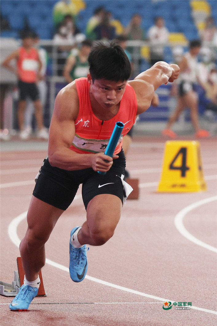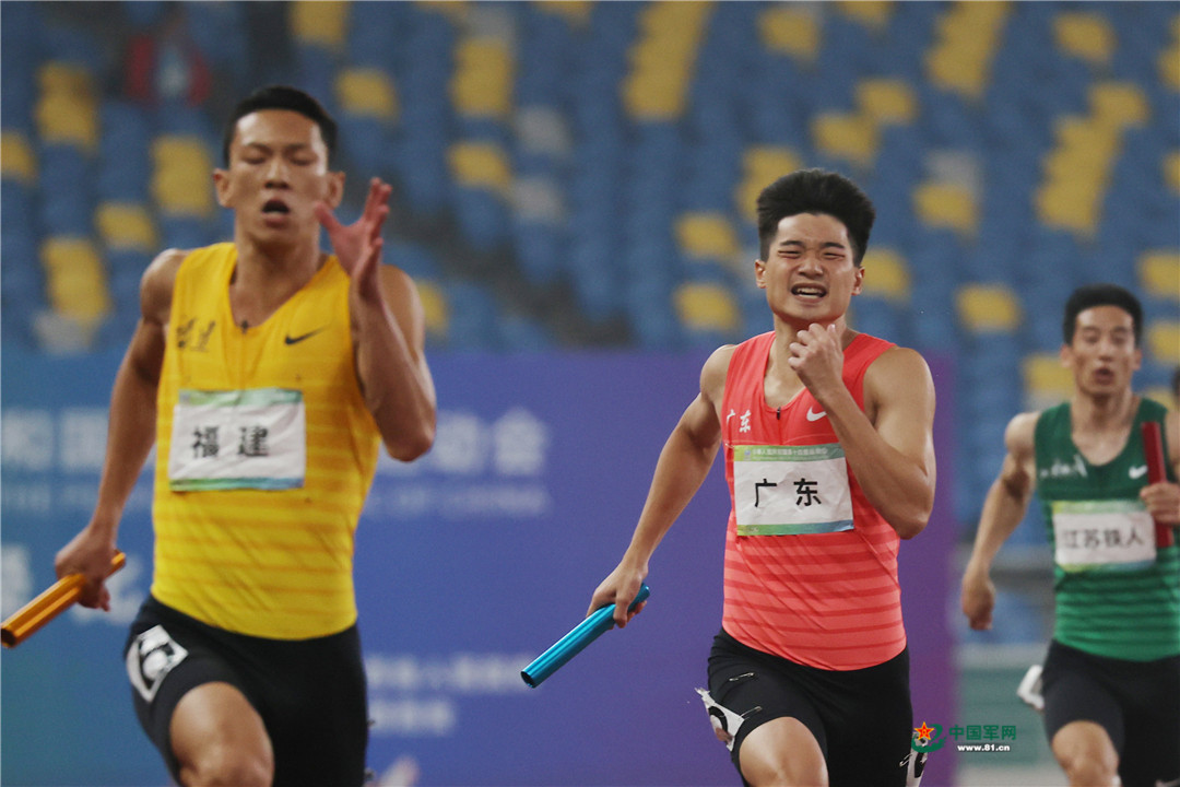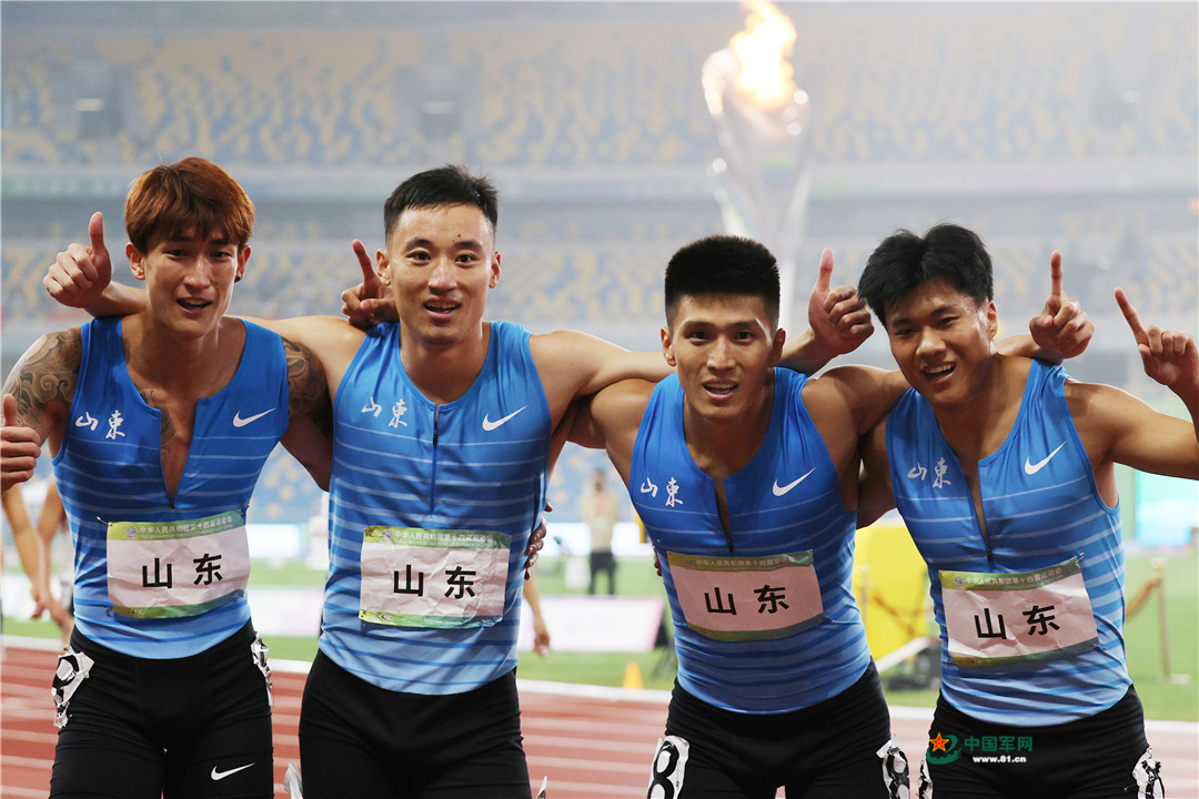 9月23日晚,在第十四届全运会田径项目男子4×200米接力决赛中,山东队以1分20秒83的成绩夺得冠军。由苏炳添领衔的广东队获得亚军,四川队获得季军。(解放军报记者李三红摄影报道)