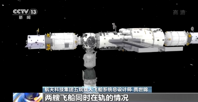 航天科技集团五院载人飞船系统总设计师 贾世锦:未来神舟飞船可能会出现两艘飞船同时在轨的情况,这样的话空间站的前向对接口要对接一艘神舟飞船,那么另一艘神舟飞船就要对接在径向,后向对接口是给天舟货运飞船留的对接口,所以径向的对接肯定是我们要实现的一个任务目标。