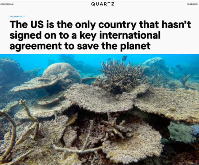 △商业新闻网站Quartz发文认为,美国拒绝批准《生物多样性公约》可能削弱国内外的生物多样性保护。