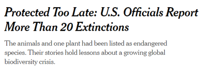 英国《卫报》日前发文总结了全球生物多样性面临的诸多威胁,首先就点出了“破坏性的土地使用”。而其中表现突出的正是美国。