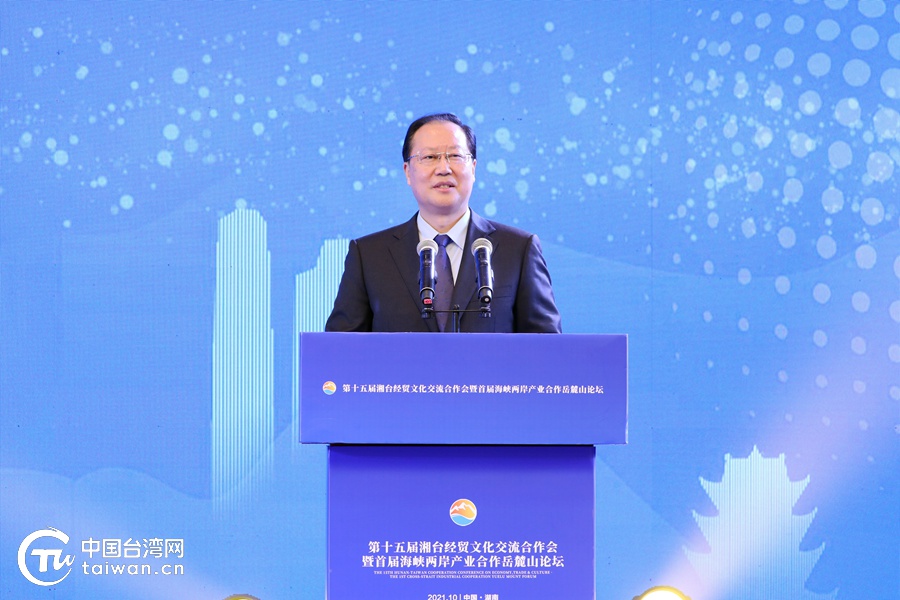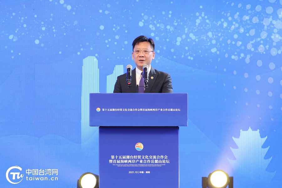 10月21日,第十五届湘台经贸文化交流合作会暨首届海峡两岸产业合作岳麓山论坛在长沙开幕。(中国台湾网 尹赛楠 摄)