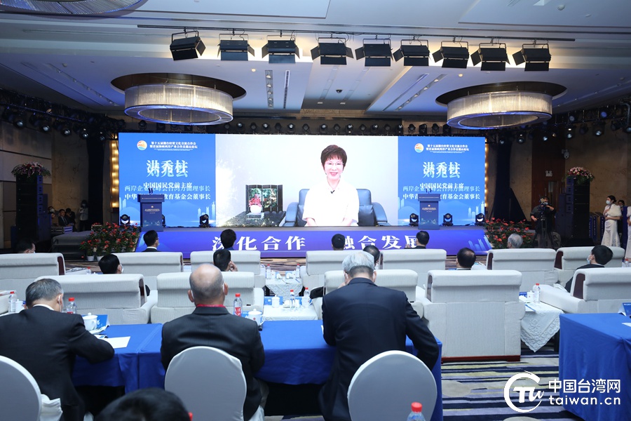 中国国民党前主席、中华青雁和平教育基金会董事长洪秀柱通过视频连线方式致辞。(中国台湾网 尹赛楠 摄)