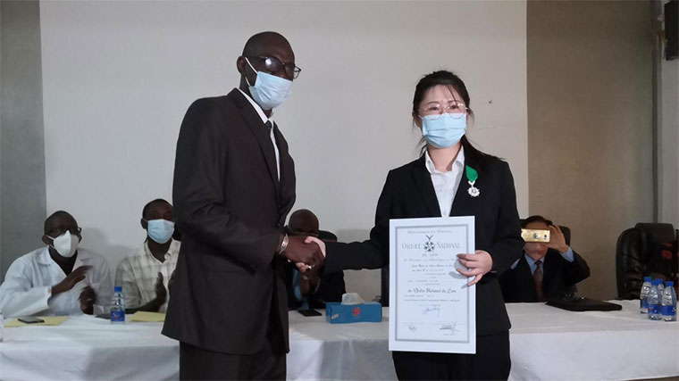 当天,塞内加尔卫生与社会行动部代表马马杜·拉明·巴吉在达喀尔比基纳国家医院举行的仪式上向中国医疗队代表颁发勋章和荣誉证书。